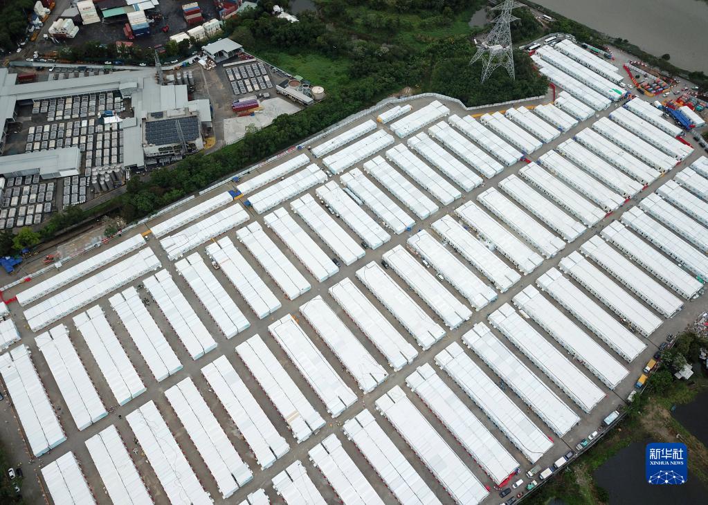 3月24日拍攝的香港元朗社區隔離設施(無(wú)人機照片)。新華社記者 李鋼 攝