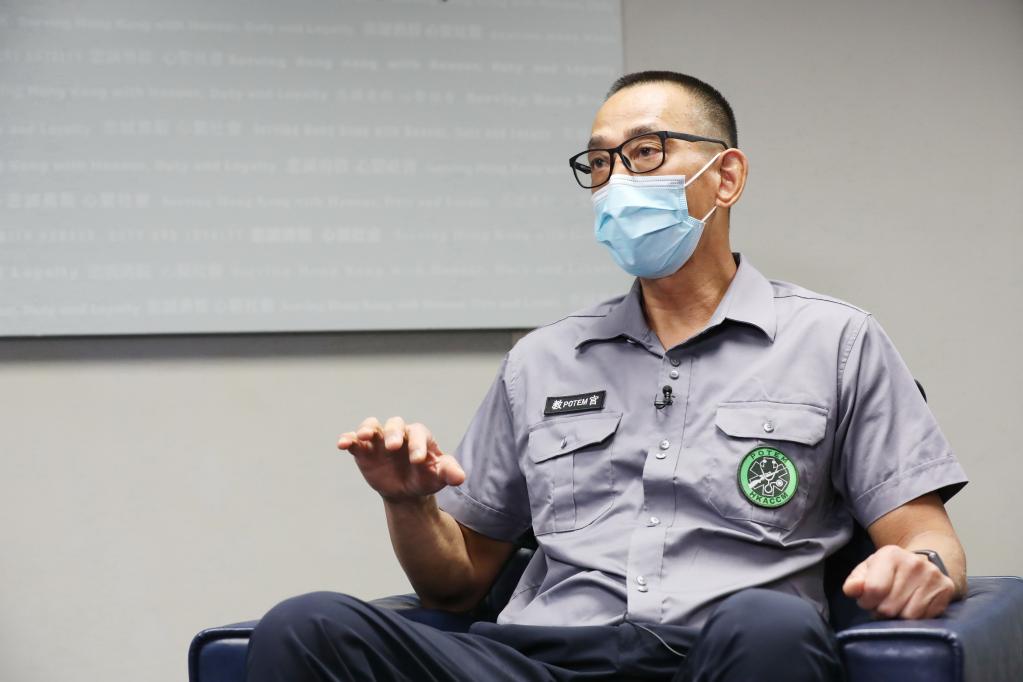 香港警員黃敬慈在接受新華社記者采訪(fǎng)(4月6日攝)。新華社記者 吳曉初 攝