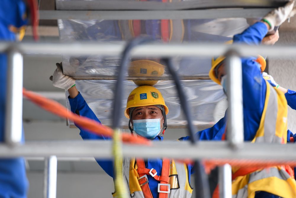 南國三四月,天氣變幻無(wú)常,烈日當空,在許多建設者臉上刻下了口罩的印記。