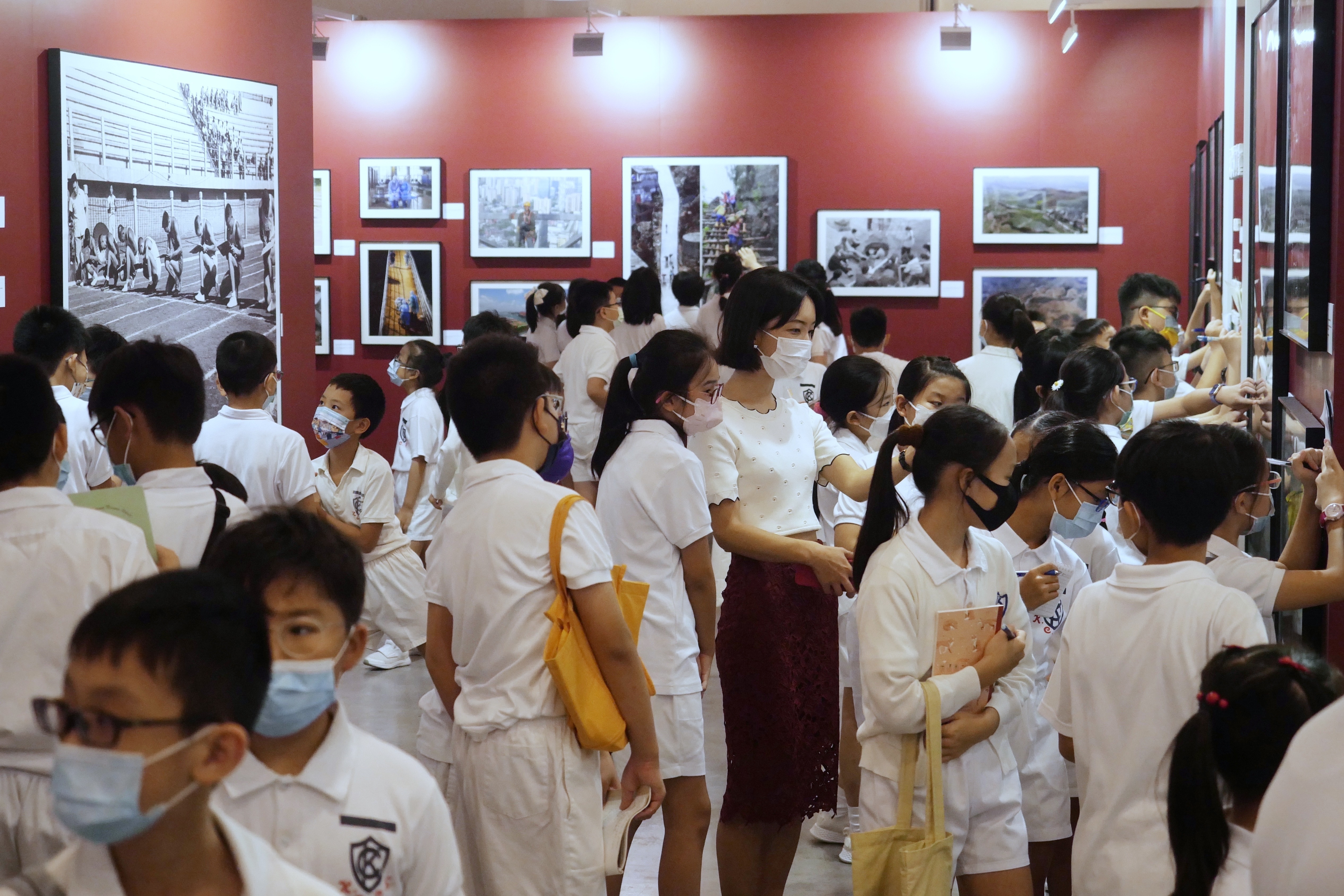 2021年10月11日,香港小學(xué)生在參觀(guān)《國家相冊》大型圖片典藏展。新華社記者 王申 攝