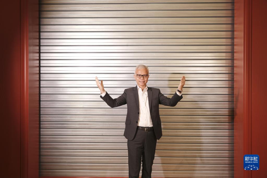 2022年4月22日,香港故宮文化博物館館長(cháng)吳志華伸展雙臂用肢體語(yǔ)言表達香港故宮文博館是一座“連結的博物館”。 新華社記者 王申 攝