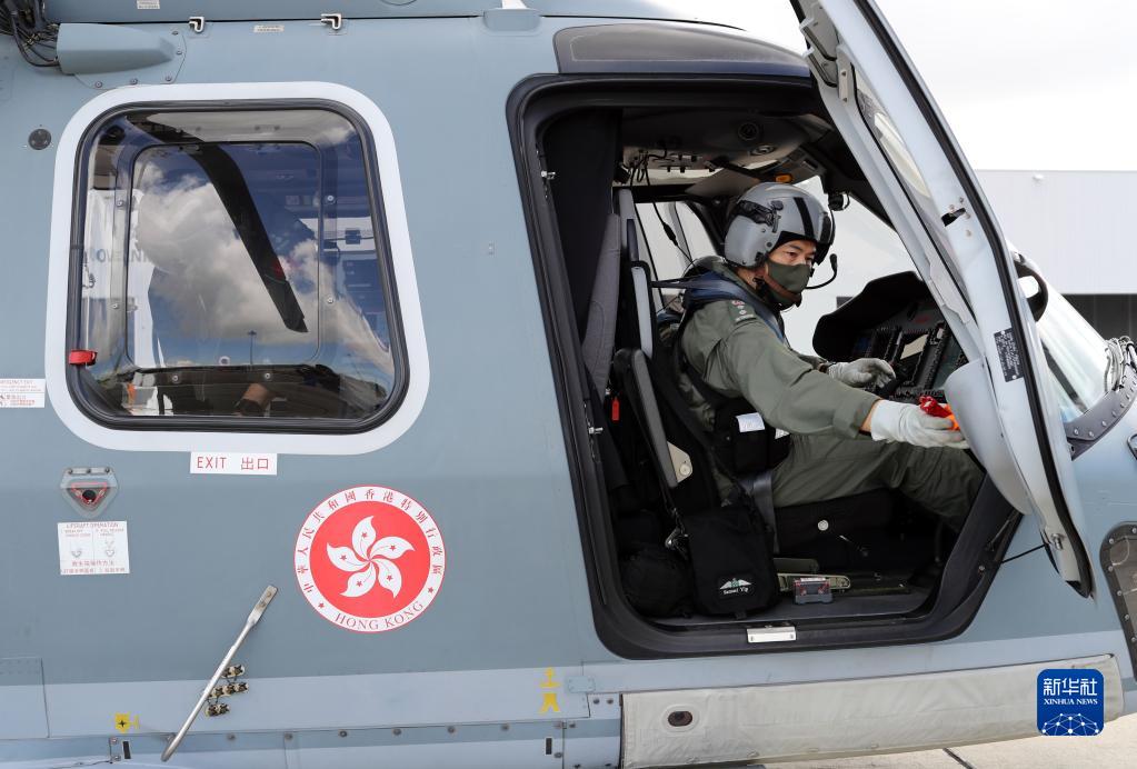 香港特區政府飛行服務(wù)隊領(lǐng)航機長(cháng)葉偉雄準備訓練(6月23日攝)。新華社記者 李鋼 攝