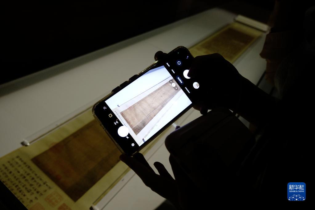9月7日,在香港故宮文化博物館,觀(guān)眾在觀(guān)賞《洛神賦全圖》(南宋摹本)。新華社記者 王申 攝