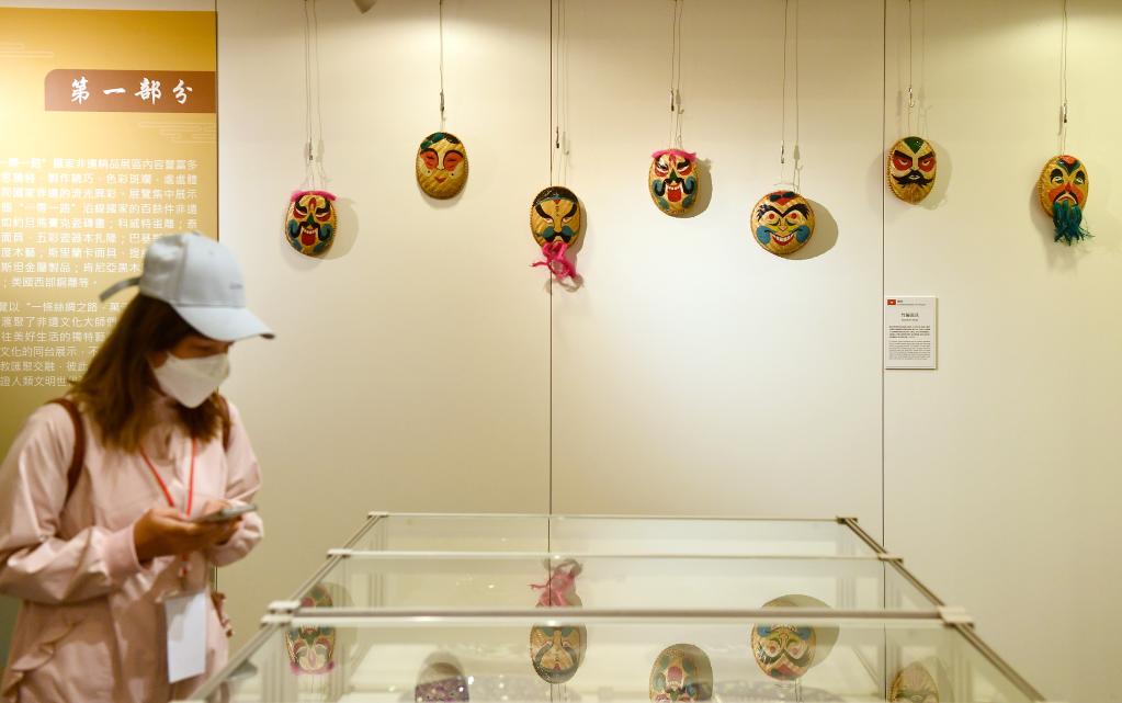本次活動(dòng)展覽現場(chǎng)共分為三個(gè)展區:多彩絲路——“一帶一路”沿線(xiàn)國家非遺精品展區、國風(fēng)潮韻——中華非遺傳承精品展區,以及源遠流長(cháng)——文房書(shū)齋精品展區,陳列300余件非遺文化代表作與精品,體現中華文化“和而不同”“美美與共”的開(kāi)放包容價(jià)值觀(guān)。