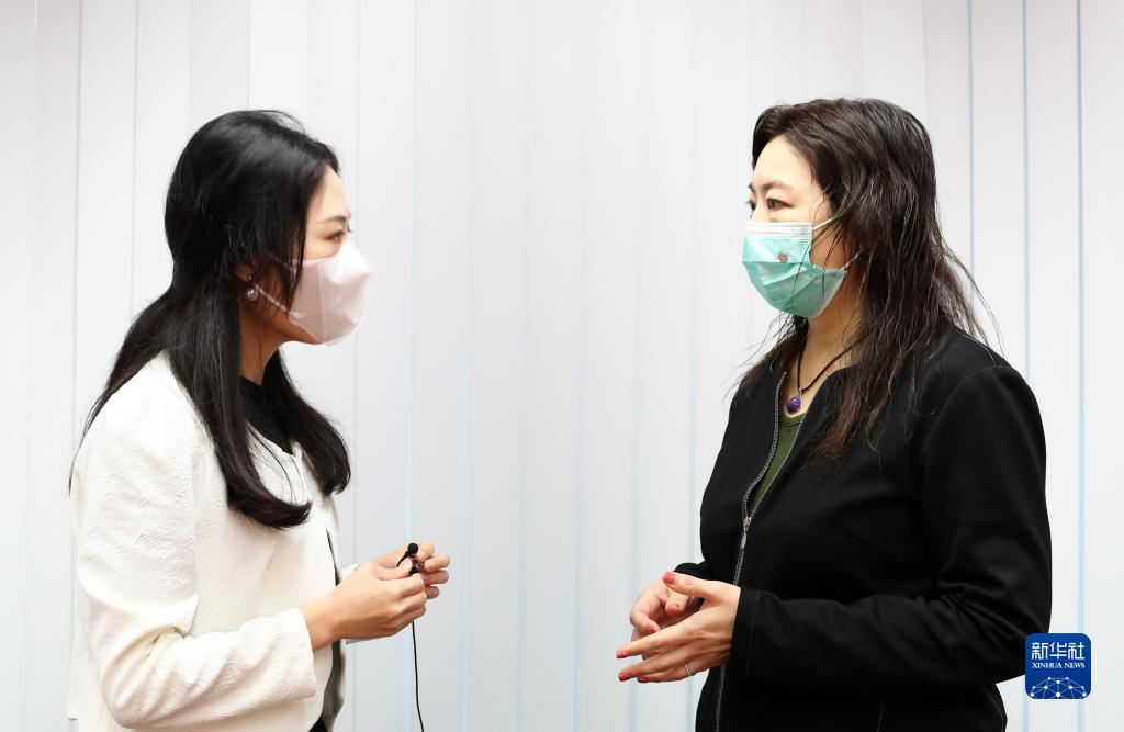 香港公共圖書(shū)館總館長(cháng)江美儀(右)接受記者采訪(fǎng)(1月3日攝)。新華社記者 李鋼 攝