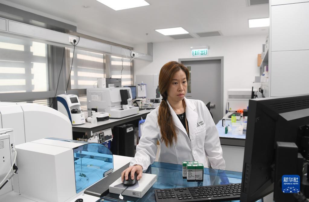3月3日,工作人員在香港科學(xué)園藥物安全測試中心工作。新華社記者 陳鐸 攝