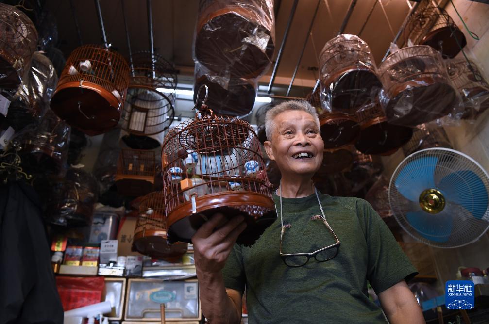 7月的香港潮濕悶熱,這位老人依然氣定神閑,不受干擾。老人名叫陳樂(lè )財,今年81歲,人稱(chēng)“財叔”。13歲他開(kāi)始跟隨舅舅學(xué)習制作雀籠,師從制籠名家,從此與雀鳥(niǎo)結下半生緣。