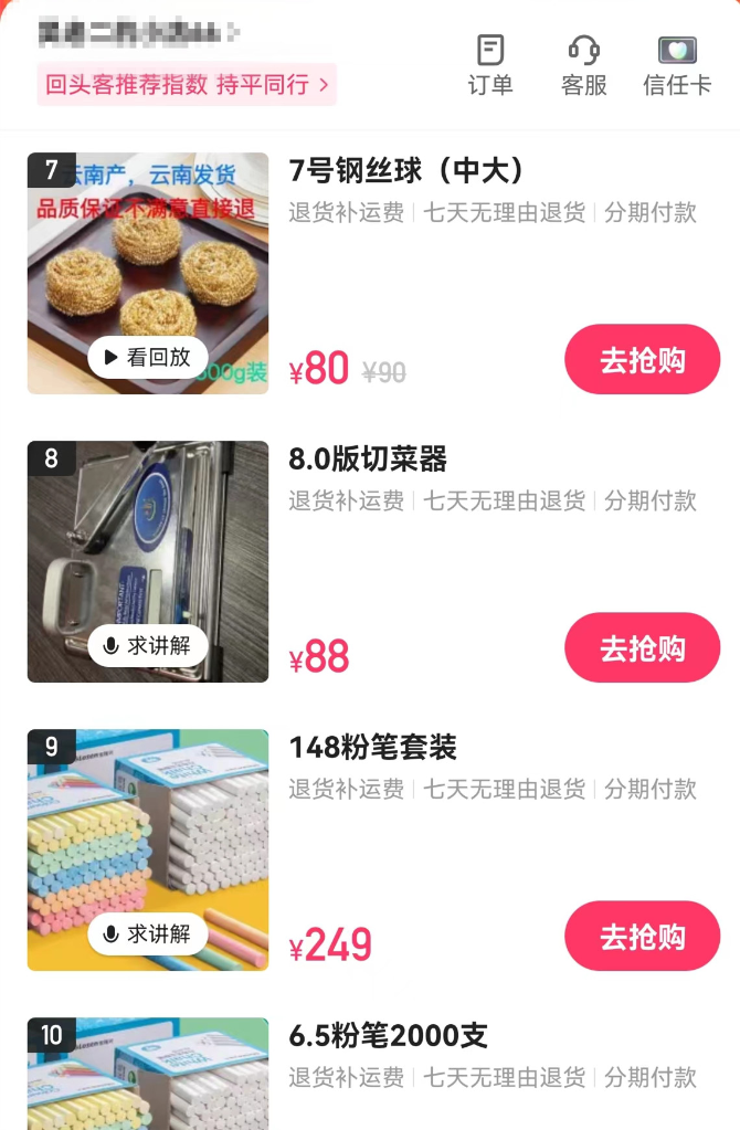 圖為一個(gè)網(wǎng)絡(luò )直播間小黃車(chē)里銷(xiāo)售的煙絲煙具,“鋼絲球”代表煙絲,“切菜器”代表手動(dòng)卷煙機,“粉筆”代表過(guò)濾嘴香煙管。(手機截屏照片)