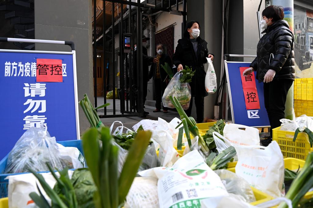 12月29日,西安市新城區西一路街道通濟南坊一號院,居民在領(lǐng)取免費生活物資。新華社記者 劉瀟攝