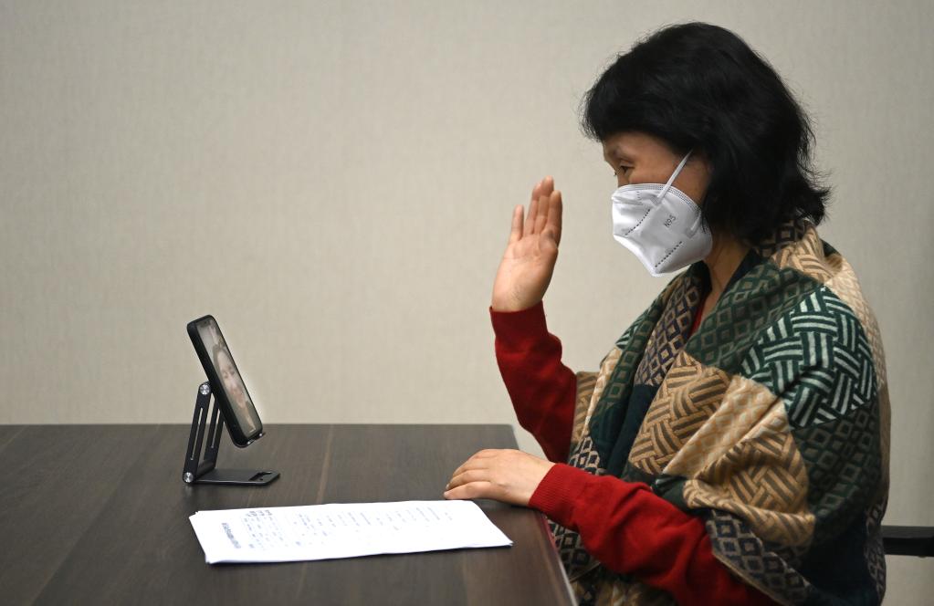 2021年12月24日,西安外國語(yǔ)大學(xué)副校長(cháng)李雪茹與報考西外的隔離考點(diǎn)考生一一視頻,送上慰問(wèn)和祝福。(新華社記者 劉瀟 攝)