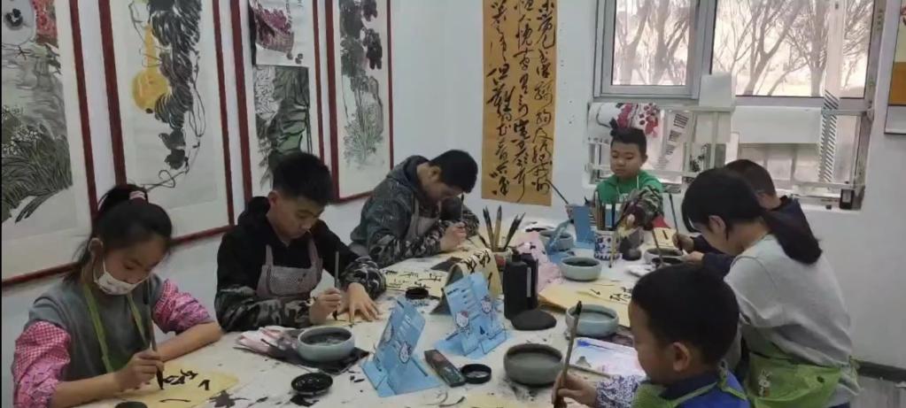 在銀川市一家書(shū)畫(huà)院,孩子們正在學(xué)寫(xiě)毛筆字和學(xué)畫(huà)國畫(huà)。(受訪(fǎng)者供圖)