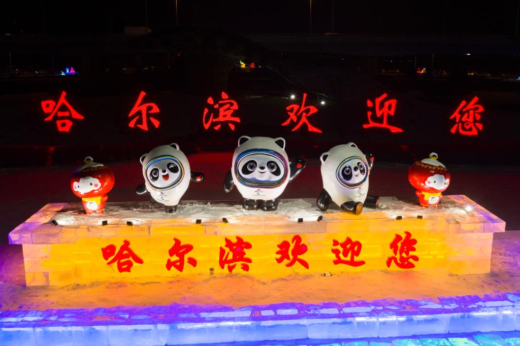 在“百年老街”中央大街,北京2022年冬奧會(huì )吉祥物“冰墩墩”和冬殘奧會(huì )吉祥物“雪容融”變身巨大冰雕,“冰里有條魚(yú)”的話(huà)題登上網(wǎng)絡(luò )熱搜榜。周邊冰景還有火炬冰柱,加上沿街懸掛的彩燈、中國結,好不熱鬧。