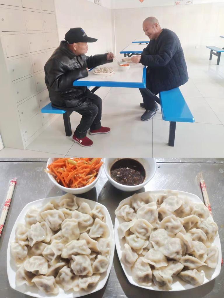 除夕夜,劉銀漢(上圖右)和丁玉強(上圖左)吃上了熱騰騰的羊肉餃子。(受訪(fǎng)者供圖)