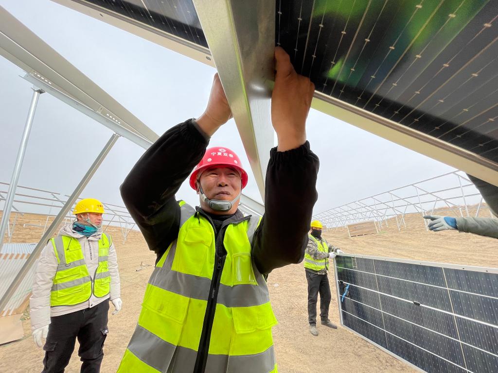 工人們正在安裝光伏板(新華社記者蘇醒 攝)