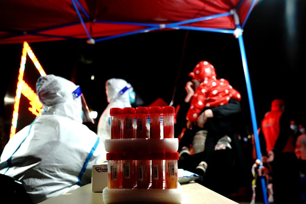 3月13日凌晨,上海市松江區洞涇鎮社區衛生服務(wù)中心的醫護人員在中海悅庭小區進(jìn)行核酸采樣。新華社記者張建松攝