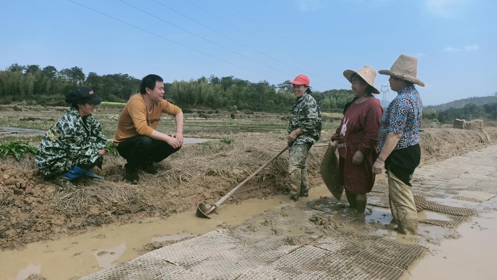 魏仕連正在指導“小管家”田間管理技術(shù)。(新干縣委宣傳部供圖)