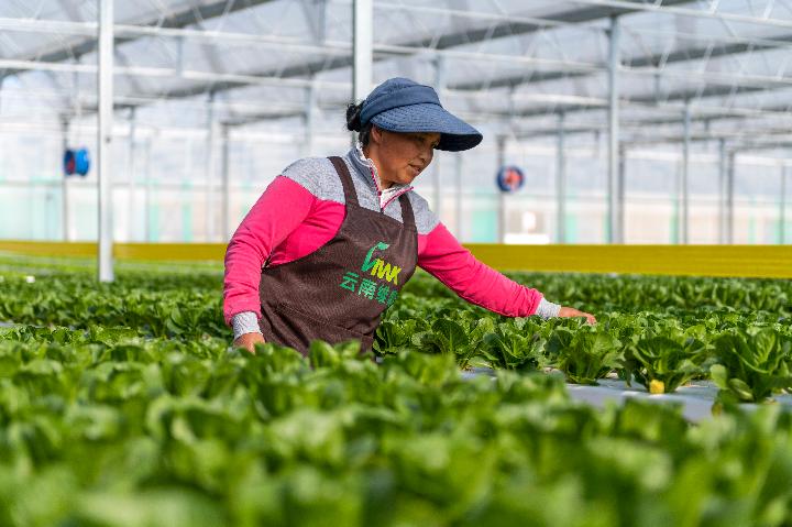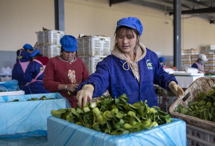 今年32歲的林春熟練地分揀著(zhù)小青菜。她去年6月辭去昆明建筑工地的活計,回家照顧孩子?!斑@比搬磚輕松,工資差不多,還能顧家?!绷执赫f(shuō),搬遷后經(jīng)社區干部引薦,就近找到一份蔬菜分揀工作,而像她這樣的搬遷群眾約有千人。
