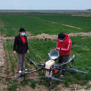 北賈村運用無(wú)人機為村民的小麥噴灑農藥。(受訪(fǎng)者供圖)