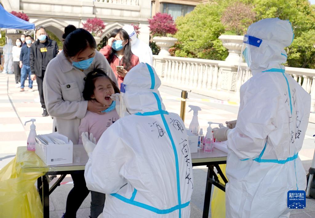 4月6日,在上海嘉定區南翔鎮一小區內,來(lái)自海南的援滬醫務(wù)人員為居民進(jìn)行核酸檢測。新華社記者 王淑娟 攝