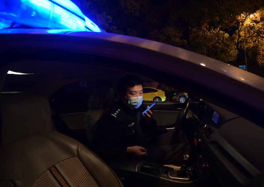 ↑4月10日,在上海市第五人民醫院門(mén)口接處警情時(shí),周譽(yù)又接到臨近轄區派出所打來(lái)的協(xié)查電話(huà)。