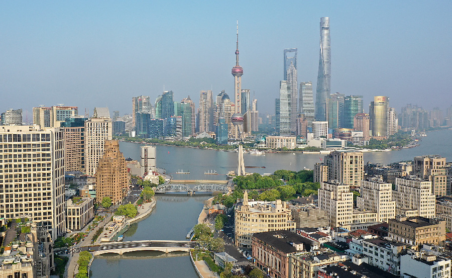 ↑“靜態(tài)”管理之下,上海乍浦路橋和外白渡橋少了往日的車(chē)流(4月21日攝,無(wú)人機照片)。
