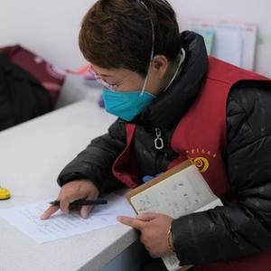 5月13日,張梅在西寧市城西區海晏路社區綜合服務(wù)中心核對志愿者信息。(新華社記者 童昊 攝)