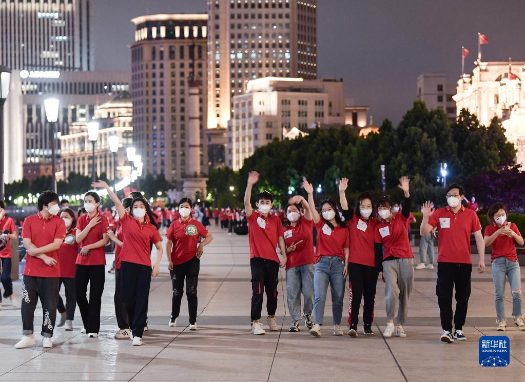 自4月1日起一直封控管理的外灘,特地為陸續撤離的援滬醫療隊開(kāi)放。告別繁重工作、脫下防護服的隊員們,此刻像孩子一般高興。他們歡歌笑語(yǔ),擺出各種造型拍照,有的還組隊跳起了流行的毽子舞……