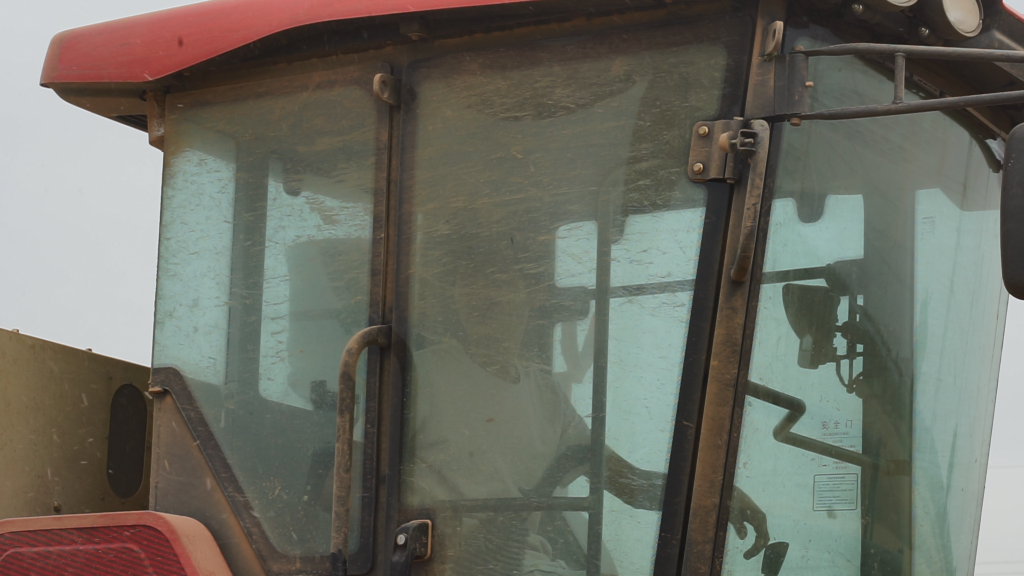 鐘正云摘下口罩,曬得黝黑的臉上落了許多細碎的麥茬,靠在椅背上稍事休息,等妻子跟主人家商量完畢,再開(kāi)著(zhù)收割機,趕往下一塊豐收的麥田。