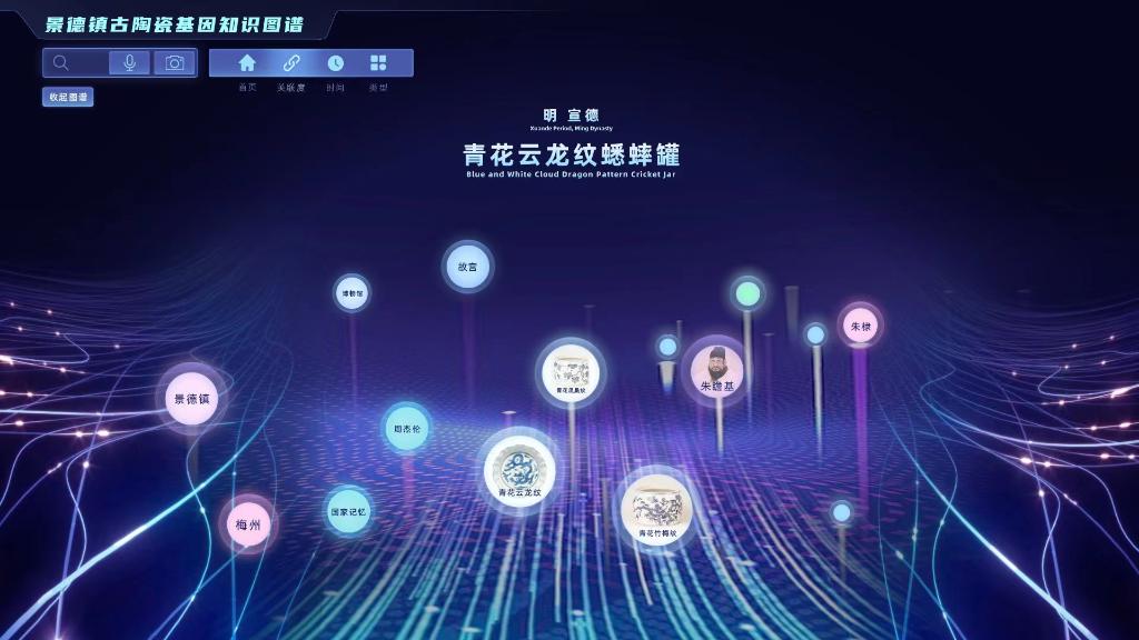 結合數字化等新技術(shù),還可還原歷史生活場(chǎng)景,勾連當下人文風(fēng)物。同步繪制的景德鎮古陶瓷基因知識圖譜,把碎片化的信息整合成全景式的系統化知識。如一件明永樂(lè )時(shí)期的青花阿拉伯紋無(wú)擋尊,既可還原明代鄭和下西洋時(shí)期東西方文化在器型和紋飾方面的交融,又可關(guān)聯(lián)同款傳世品的館藏地故宮博物院、北京冬奧會(huì )青花瓷服飾等信息。