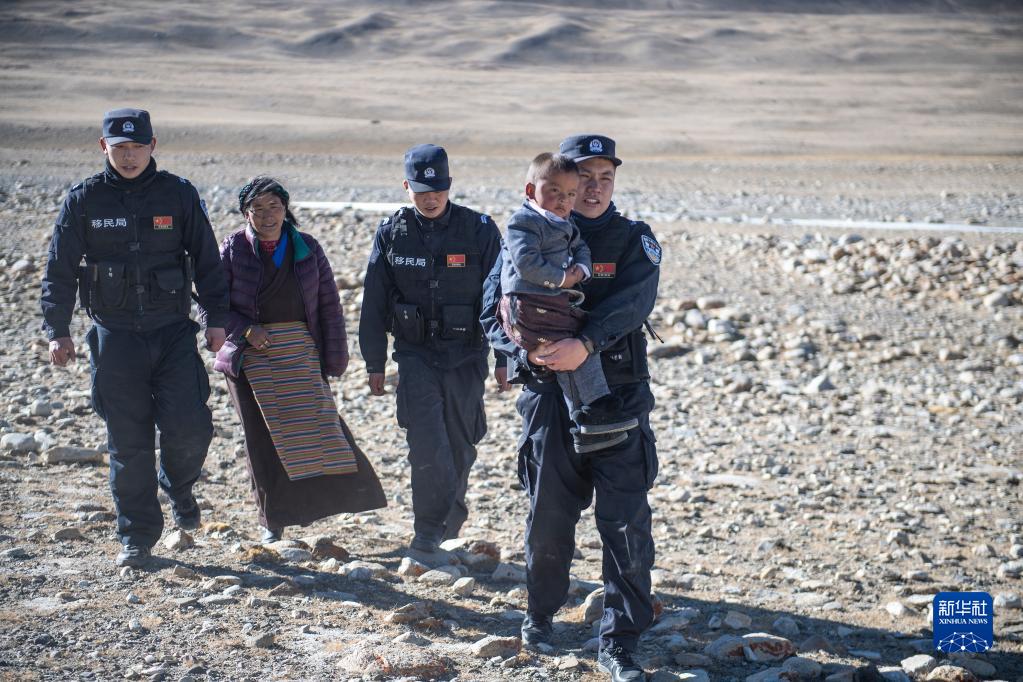 西藏山南市浪卡子縣普瑪江塘派出所的移民管理警察在巡邏途中(2021年11月20日攝)。新華社記者 孫非 攝