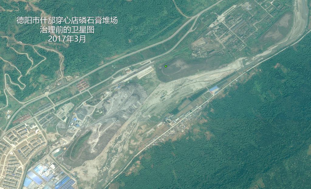 德陽(yáng)什邡市穿心店磷石膏堆場(chǎng)位于沱江上游支流石亭江岸。由于各方面原因,磷石膏堆場(chǎng)時(shí)常出現滲漏、滑坡等情況,導致周邊水質(zhì)、土壤及石亭江總磷超標,影響沱江下游水質(zhì)。上圖為位于磷石膏堆場(chǎng)治理前的衛星圖和實(shí)拍圖。下圖為同一點(diǎn)位,磷石膏堆場(chǎng)治理后的衛星圖和實(shí)拍圖。