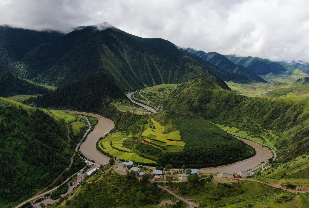 這是2021年8月7日在青海省果洛藏族自治州班瑪縣境內拍攝的瑪可河(無(wú)人機照片)。新華社記者 張龍 攝