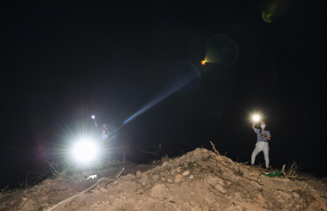 這是8月25日晚在隔離帶山頂拍攝的救援人員。