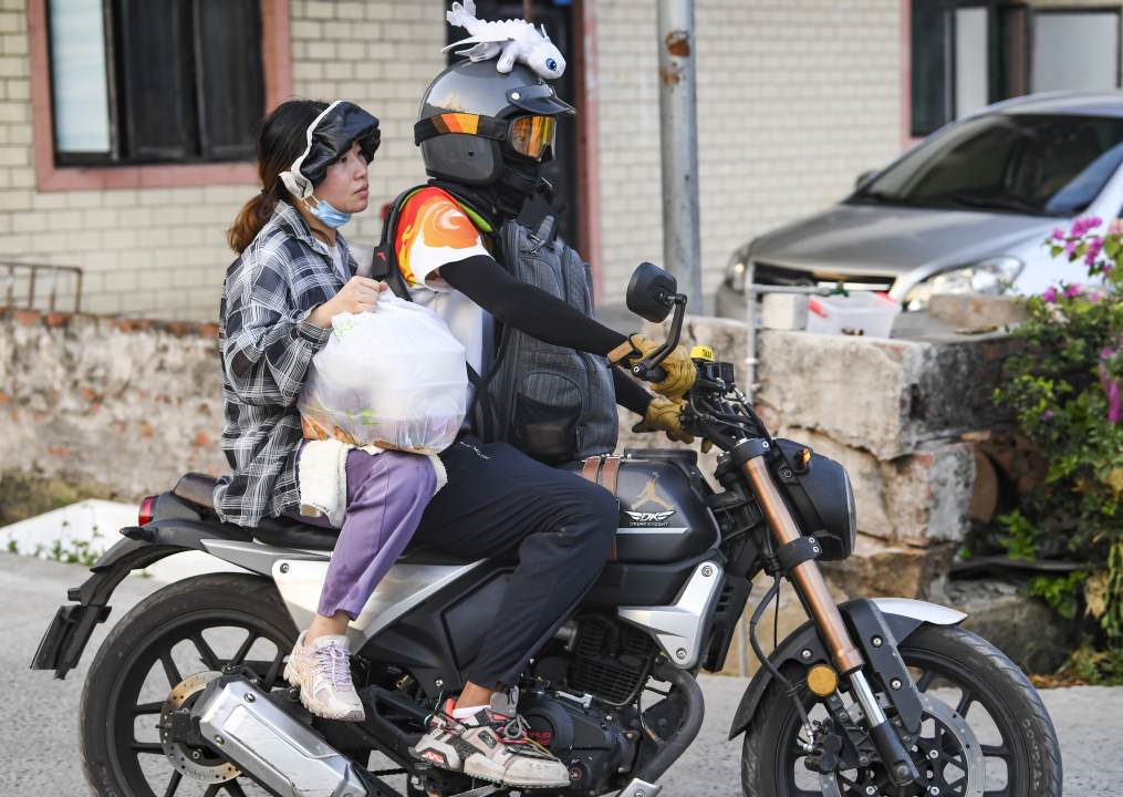 8月24日,摩托車(chē)志愿者往返于救援物資發(fā)放點(diǎn)和轉運點(diǎn)之間。