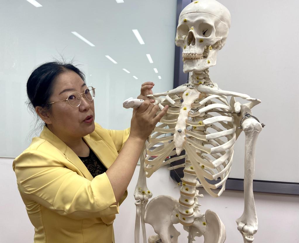 為此,張琳和老師們一起利用現有技術(shù)開(kāi)發(fā)了人體語(yǔ)音腧穴和骨骼模型。將模型上的穴位、經(jīng)絡(luò )線(xiàn)設計成凸點(diǎn)、凸線(xiàn),或貼上電子標簽,學(xué)生們用手觸摸這些位置時(shí),通過(guò)電子點(diǎn)讀筆點(diǎn)觸,就能響起語(yǔ)音,告訴他們這些穴位、經(jīng)絡(luò )或骨骼部位的名稱(chēng)。
