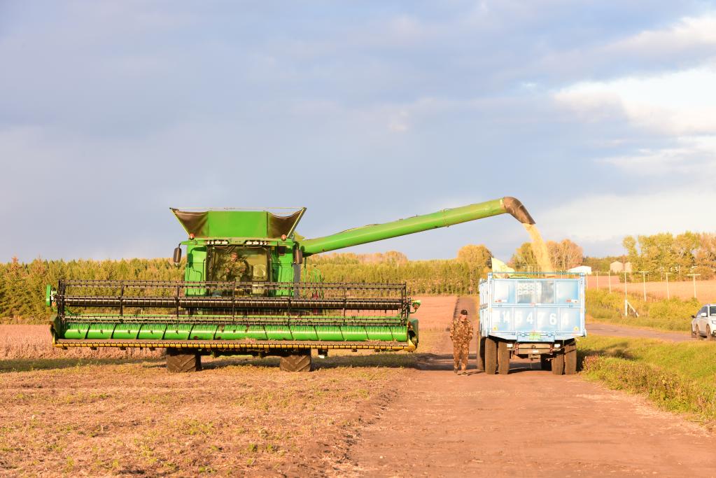 北大荒集團建設農場(chǎng)有限公司剛收獲的大豆正在裝車(chē)。新華社記者 黃騰 攝