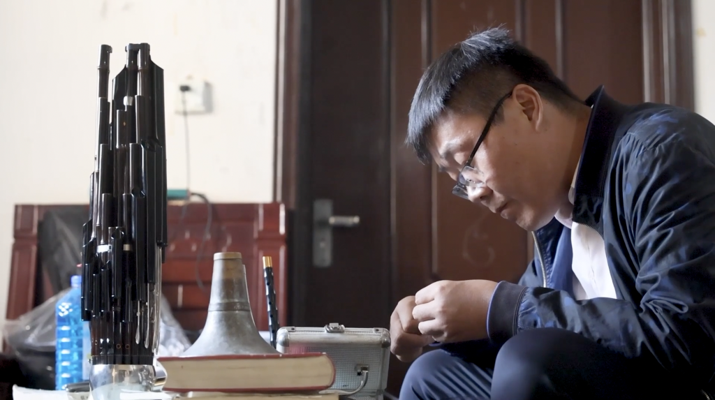 2012年5月,黃磊正式成為嗩吶這項非遺的傳承人,此后他便一頭扎進(jìn)嗩吶的演奏與推廣工作中。10年來(lái),隨著(zhù)國家對民間優(yōu)秀傳統文藝的大力扶持,加之黃磊和團隊的努力,嗩吶演奏藝術(shù)在當地煥發(fā)出勃勃生機。