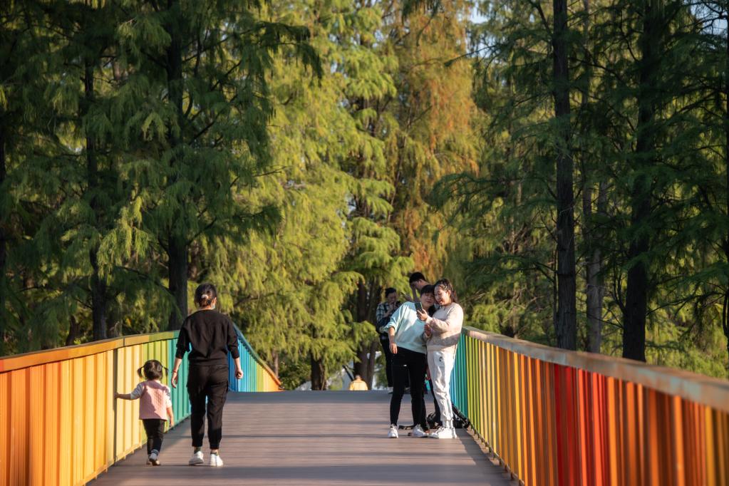 在東湖西北一隅的華僑城生態(tài)濕地公園,一座彩虹棧橋橫跨而過(guò),橋上一群孩童正嬉笑打鬧,橋下一只野鴨懶洋洋撥弄著(zhù)湖水。