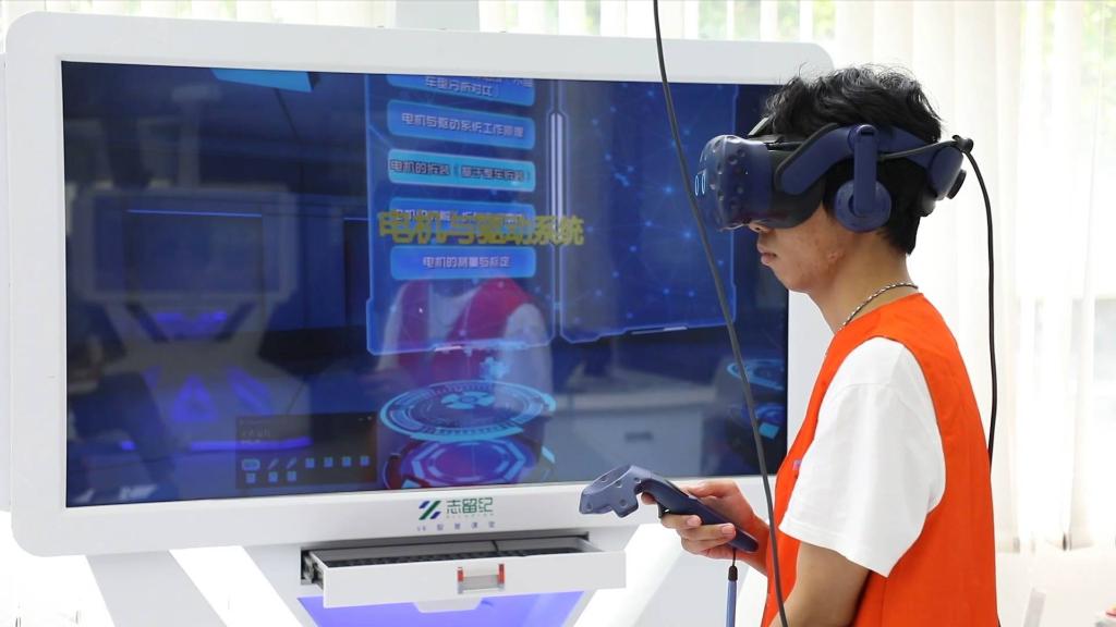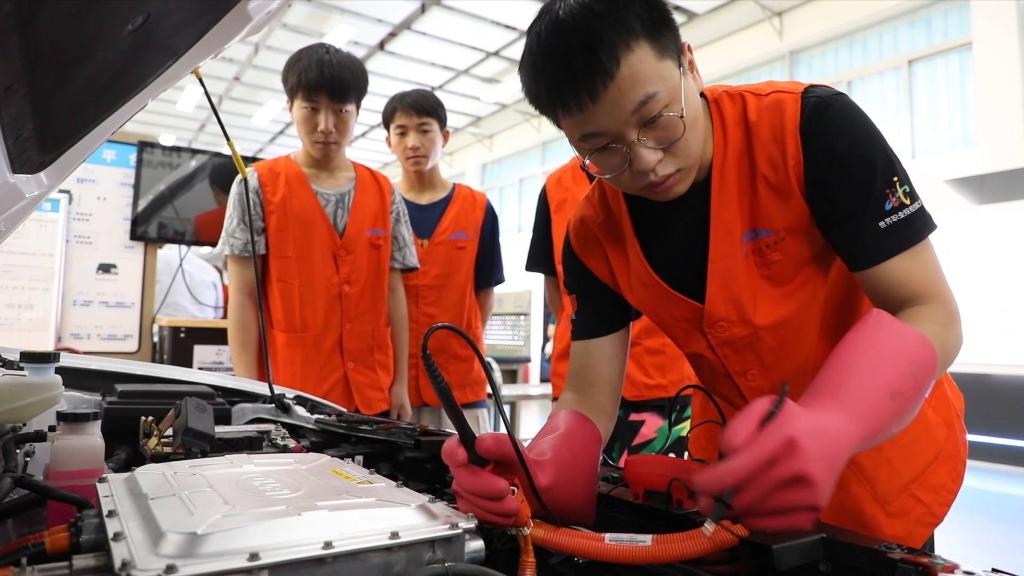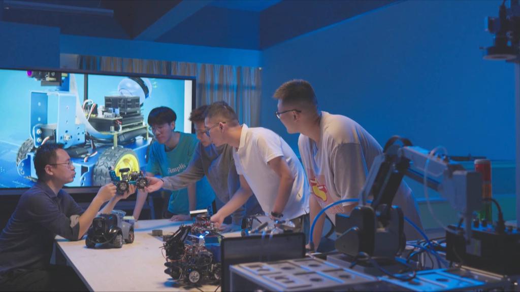 在深圳職業(yè)技術(shù)學(xué)院的汽車(chē)與交通學(xué)院實(shí)訓室,大三學(xué)生宋明亮在與同學(xué)們學(xué)習汽車(chē)檢測與維修原理。在這所高職院校,從5G無(wú)人駕駛汽車(chē),到地鐵駕駛艙、智能機器人,甚至企業(yè)沒(méi)有面市的最新科研成果,都成為該校的教學(xué)樣本。