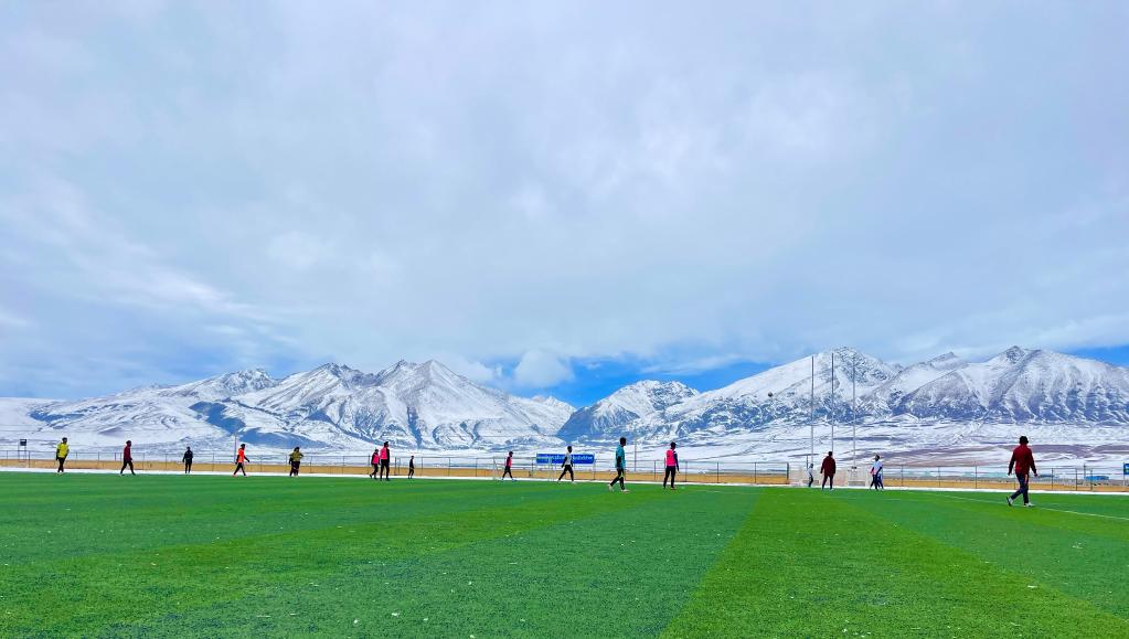 ↑這是那曲市嘉黎縣中學(xué)的足球場(chǎng)(3月30日攝)