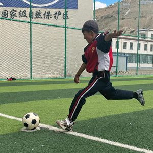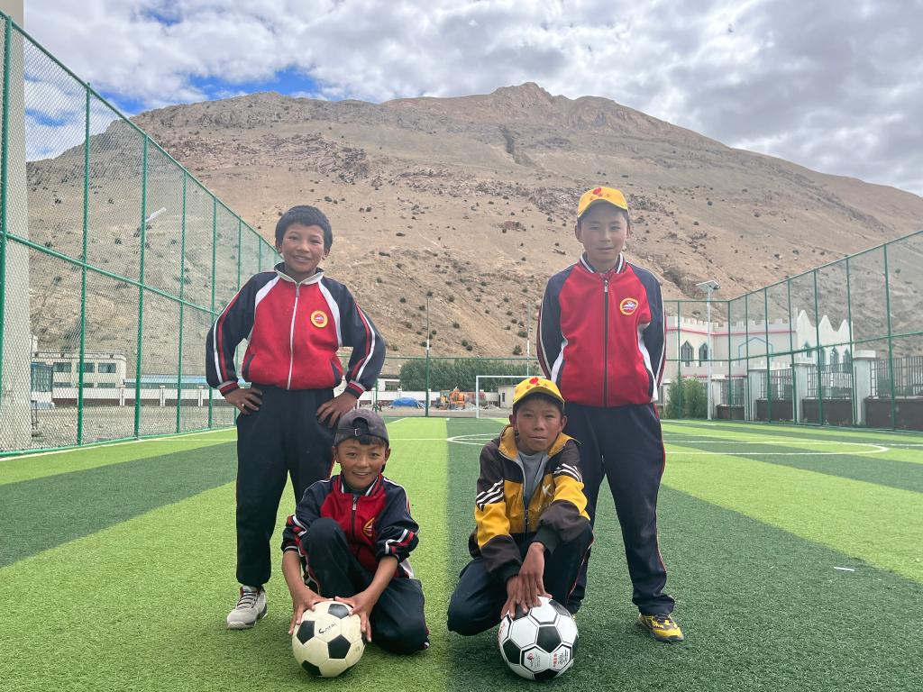 ↑當雄縣中學(xué)的學(xué)生們正在踢足球(1月5日攝)