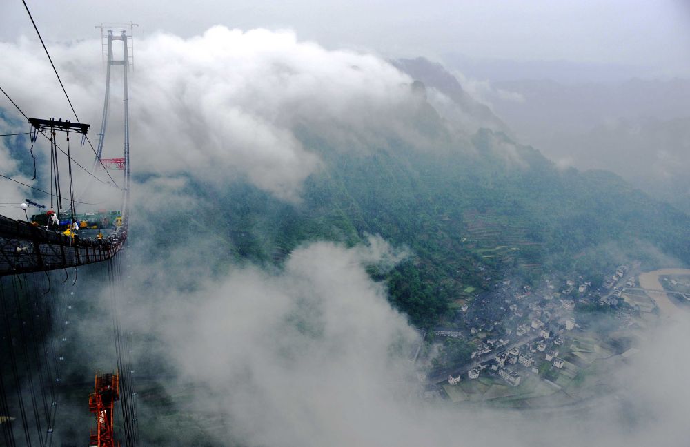 ↑ 2011年5月2日拍攝的施工中的矮寨大橋。
