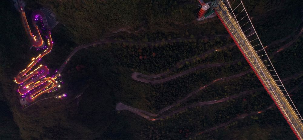 ↑ 2021年12月拍攝的矮寨大橋和盤(pán)山公路。