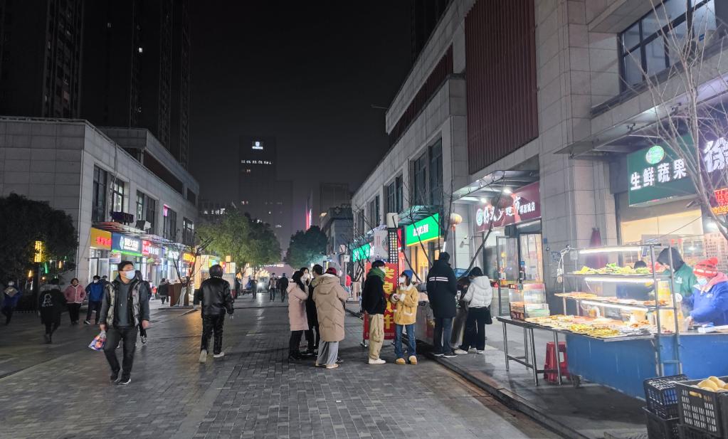 12月28日晚記者拍攝的合肥高新區的一條商業(yè)街。(新華社記者何曦悅 攝)