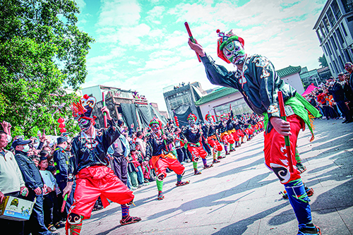 兔年正月初一,廣東汕尾陸豐市甲子鎮舉辦甲子英歌巡游活動(dòng)。(陳鏗銓、蔡華鎮攝)