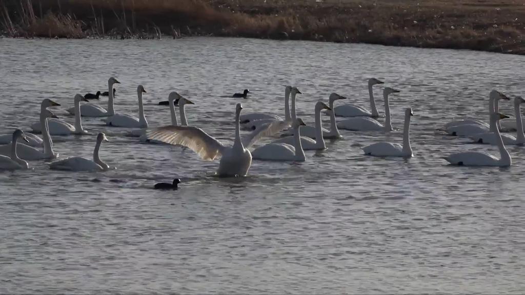 據榮成大天鵝國家級自然保護區工作人員介紹,部分大天鵝已有遷徙跡象,預計遷徙高峰期將出現在3月初。為保證大天鵝有充足體力回遷,保護區工作人員會(huì )定時(shí)為大天鵝投食。
