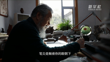 中國工藝美術(shù)大師、魯派內畫(huà)傳承人張廣慶是內畫(huà)界三位亞太地區手工藝大師之一。在掌心大小的鼻煙壺里反向作畫(huà),難度可想而知。張廣慶不斷嘗試,將國畫(huà)的皴、擦、染、點(diǎn)、勾、撕等技法引入內畫(huà),在晶瑩剔透的小瓶?jì)壤L出氣象萬(wàn)千的畫(huà)面。