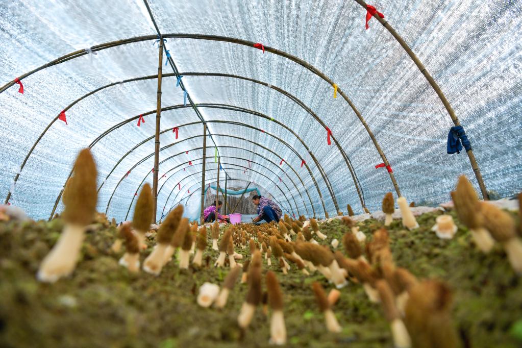 農民正在采收羊肚菌。新華社記者楊文斌 攝