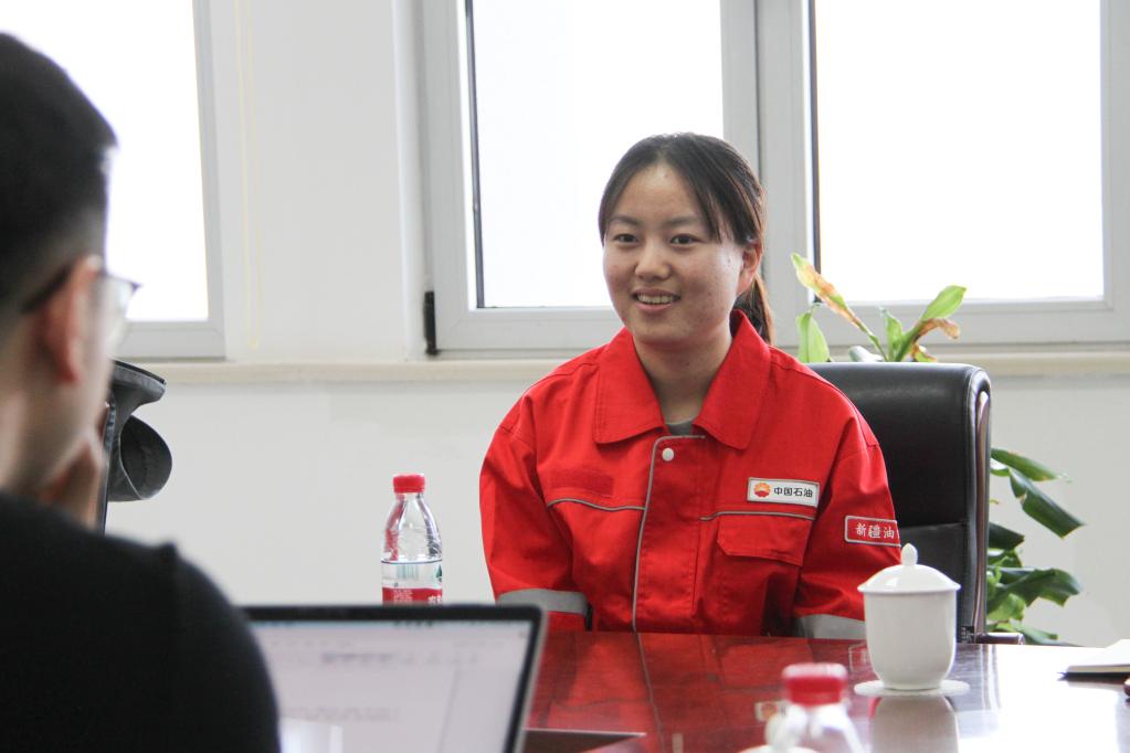 2月23日,中國石油新疆油田公司采油二廠(chǎng)員工阮思雅接受采訪(fǎng)。新華社記者劉紅霞 攝