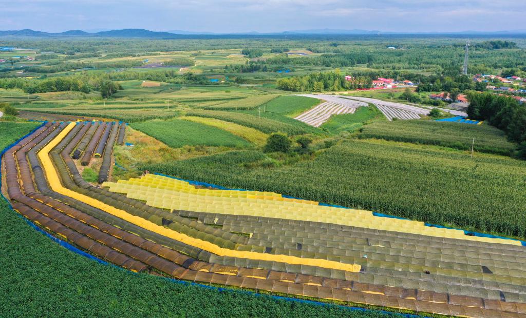 這是吉林省撫松縣萬(wàn)良鎮大方村旁的人參種植大棚(2020年8月28日攝,無(wú)人機照片)。新華社記者許暢 攝